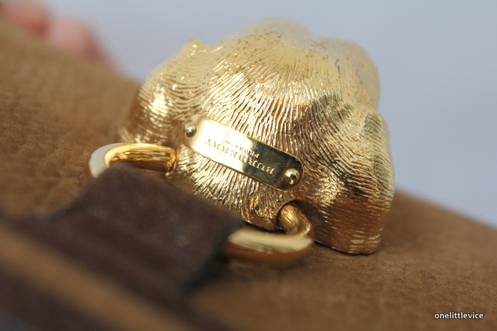 Made from a combination of nubuck leather (for an incredibly soft finish) and suede. The polished animal head is made using bespoke lost-wax casting. In as-new condition, no marks or stains, and comes with original Burberry dust bag.